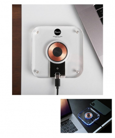 The LoFi wireless charger is a device where functionality meets aesthetics. This sleek acrylic clear charger seamlessly blends into your desktop or workstation, providing a stylish & efficient way to power up your devices. With the press of a button, you can cycle through multiple color options & turn the light off completely. Laser engraved logo glows with backlit colors giving this charger an out-of-this-world branding opportunity. Complies with Prop 65. 4.32" W x 4.32" L x 3" H