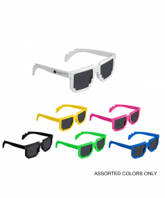 These sunglasses feature a pixilated frame design and offer 100% UVA and UVB protection from the sun.